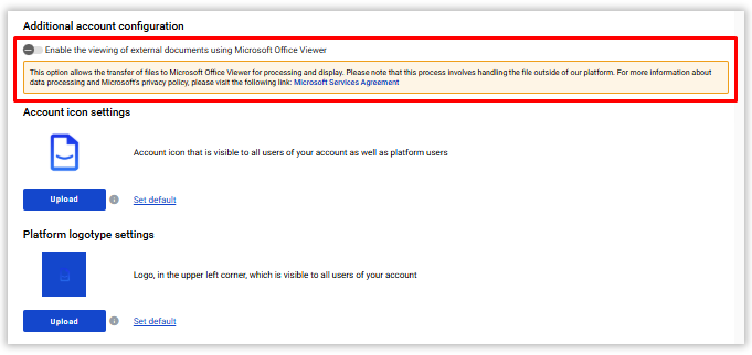 The function of viewing external documents using Microsoft Office Viewer can be activated only by a user with Account Owner rights