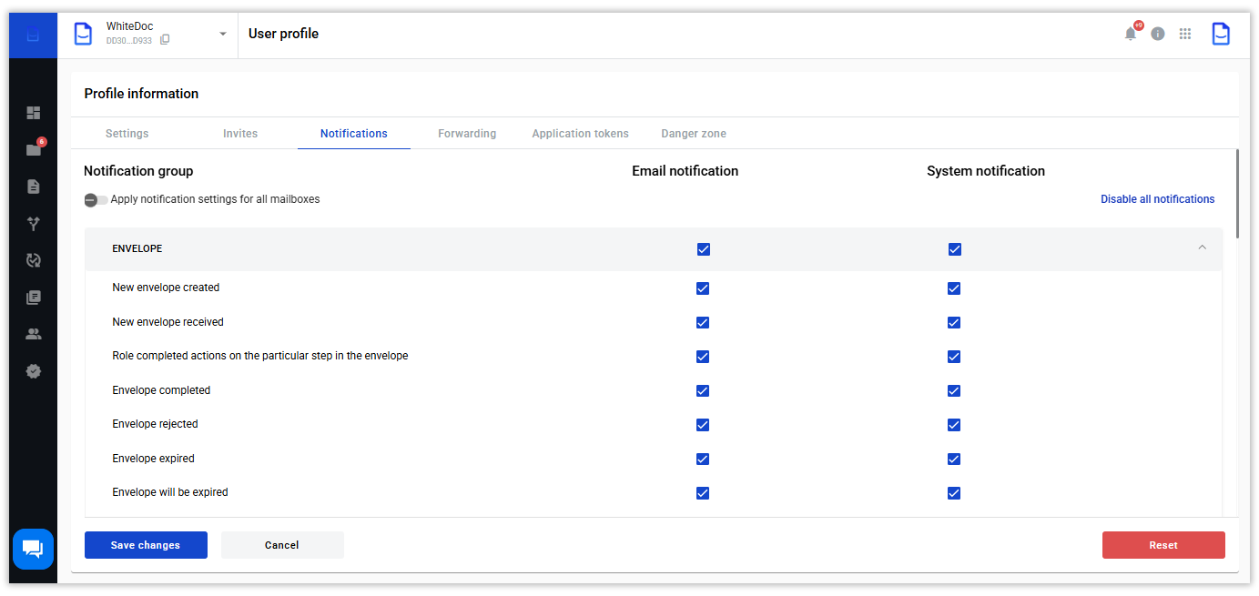 WhiteDoc has a flexible system of user notifications about various actions on the platform.