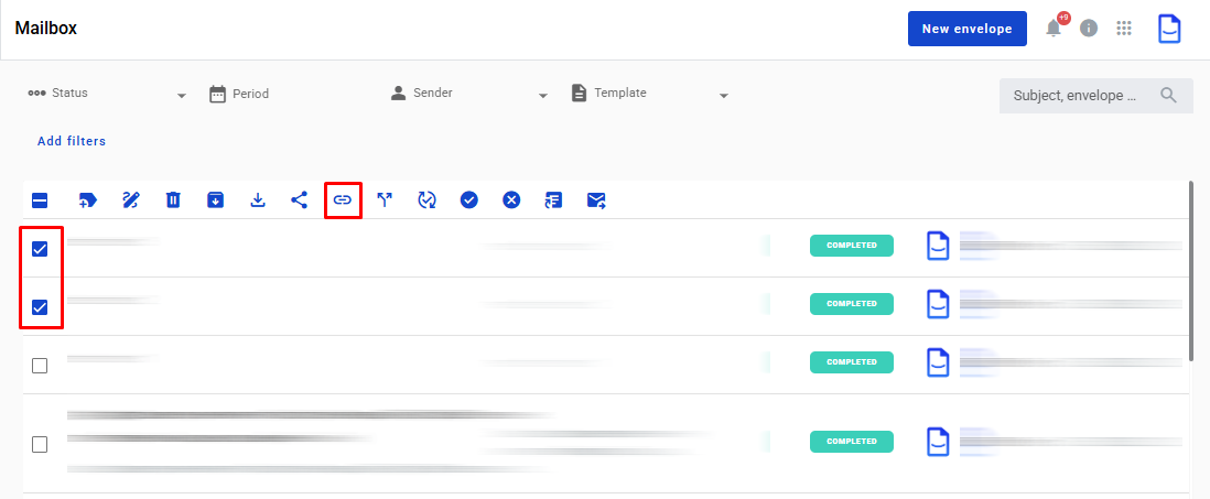 - To remove envelopes from the chain, select the envelopes with the chain from the list of envelopes