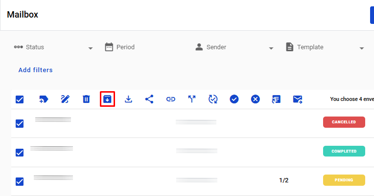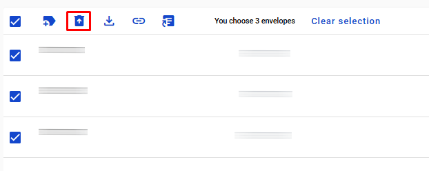 To move envelopes to the Archive folder, select them and click the 'Archive' button.