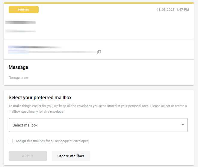 If you are already logged in on another browser tab and have a default mailbox enabled, it will be used automatically, and the envelope will be sent after this step. If you do not have a default mailbox enabled, you will be prompted to select one of your mailboxes..png)