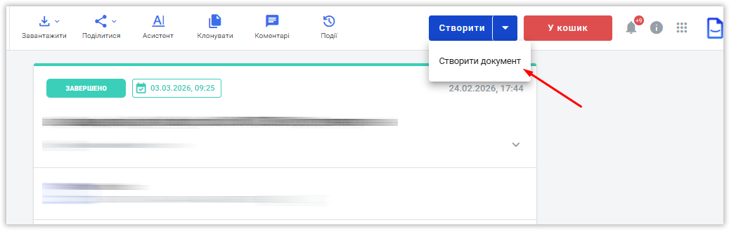 Для зручності користування, заявку можна заповнити лише один раз, щоб надалі використовувати її для створення інших специфікацій, змінюючи частину про документ. Просто знайдіть заявку і натисніть кнопку "Створити документ".