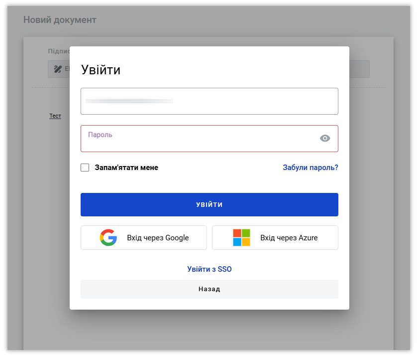- Додана можливість входу в обліковий запис через Google/Azure під час ініціювання конверта