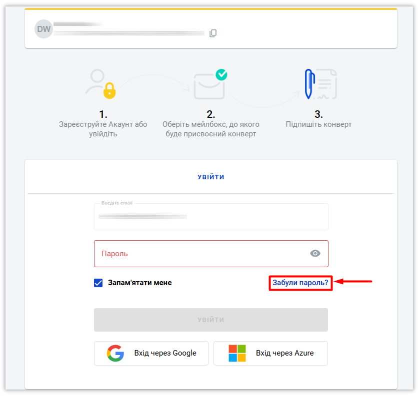 Додано можливість створення запиту на відновлення пароля на сторінці запрошення до конверта для неавторизованого користувача