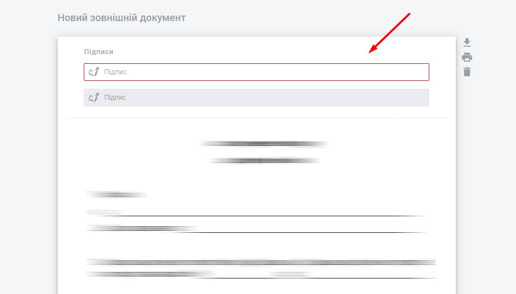- Щоб додати чорнильний підпис до зовнішнього документа, натисніть на поле підпису
