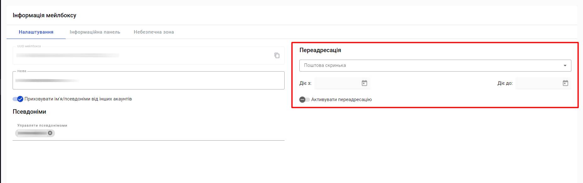 - Перейдіть в Адмінпанель -> Поштові скриньки -> Налаштування вибраної поштової скриньки
