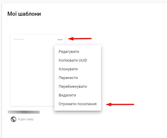 - Відкрийте меню конкретного шаблону і виберіть пункт "Отримати посилання"