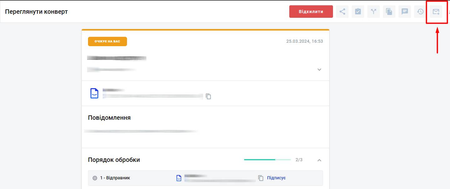 Користувач натискає на іконку повторного надсилання і підтверджує сповіщення про конверт, але користувач може повторно надсилати сповіщення лише раз на 1 годину