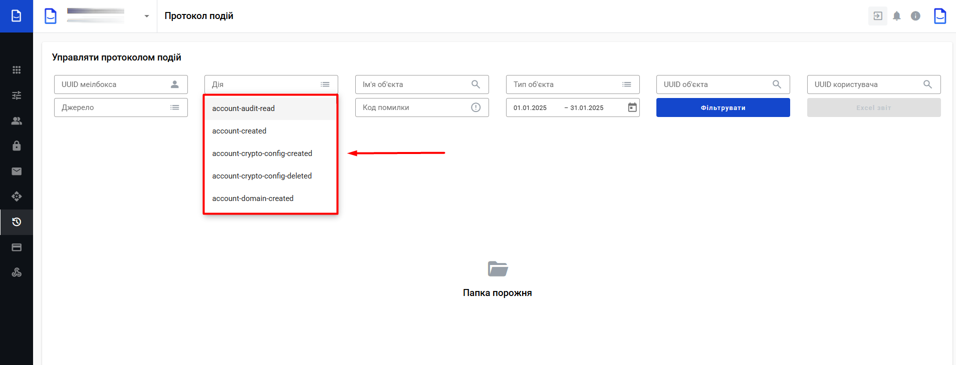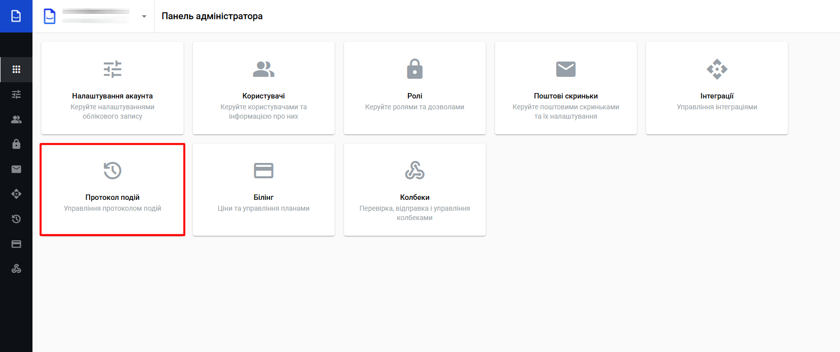 Протокол подій — функціонал, який дозволяє переглядати та фільтрувати різні події в акаунті.