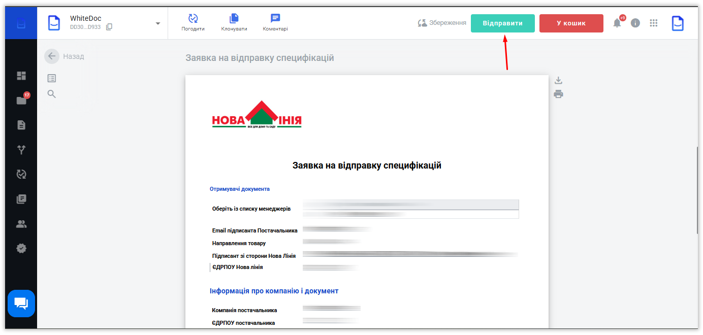 У статті нижче представлена детальна інструкція зі скріншотами по процесу відправки специфікацій