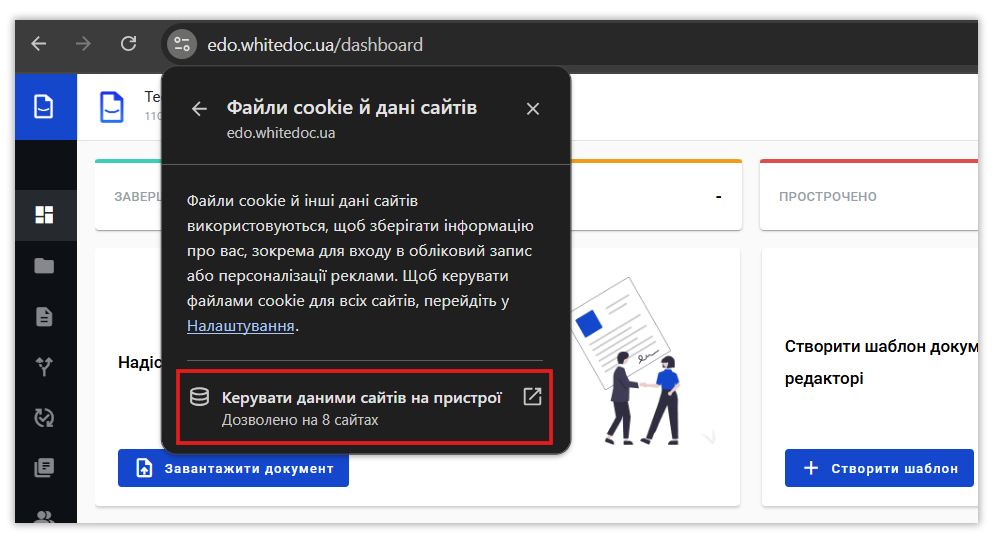 Після очищення кеш і cookie — потрібно буде знову ввійти в обліковий запис WhiteDoc