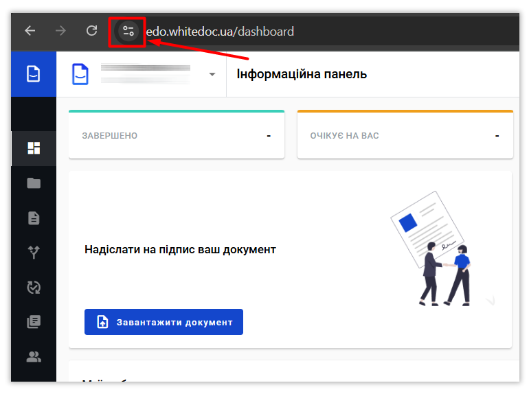 На сторінці WhiteDoc натисніть на замочок, який знаходиться ліворуч у полі з посиланням: