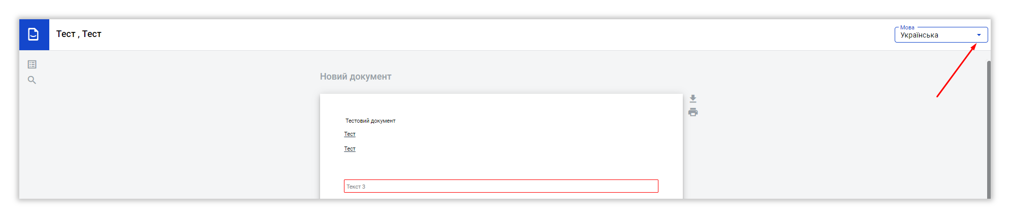 У правому верхньому куті екрану є можливість одразу змінити мову: