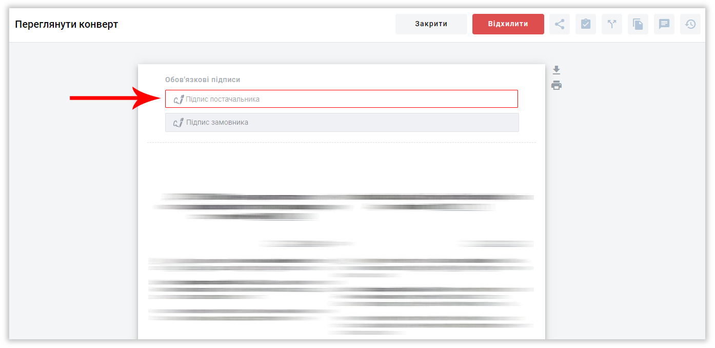 Відкрийте необхідний конверт та натисніть на червоне поле підпису: