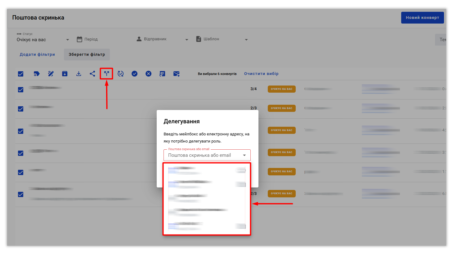 Додана можливість масово делегувати конверти, тепер така дія доступна у списку конвертів