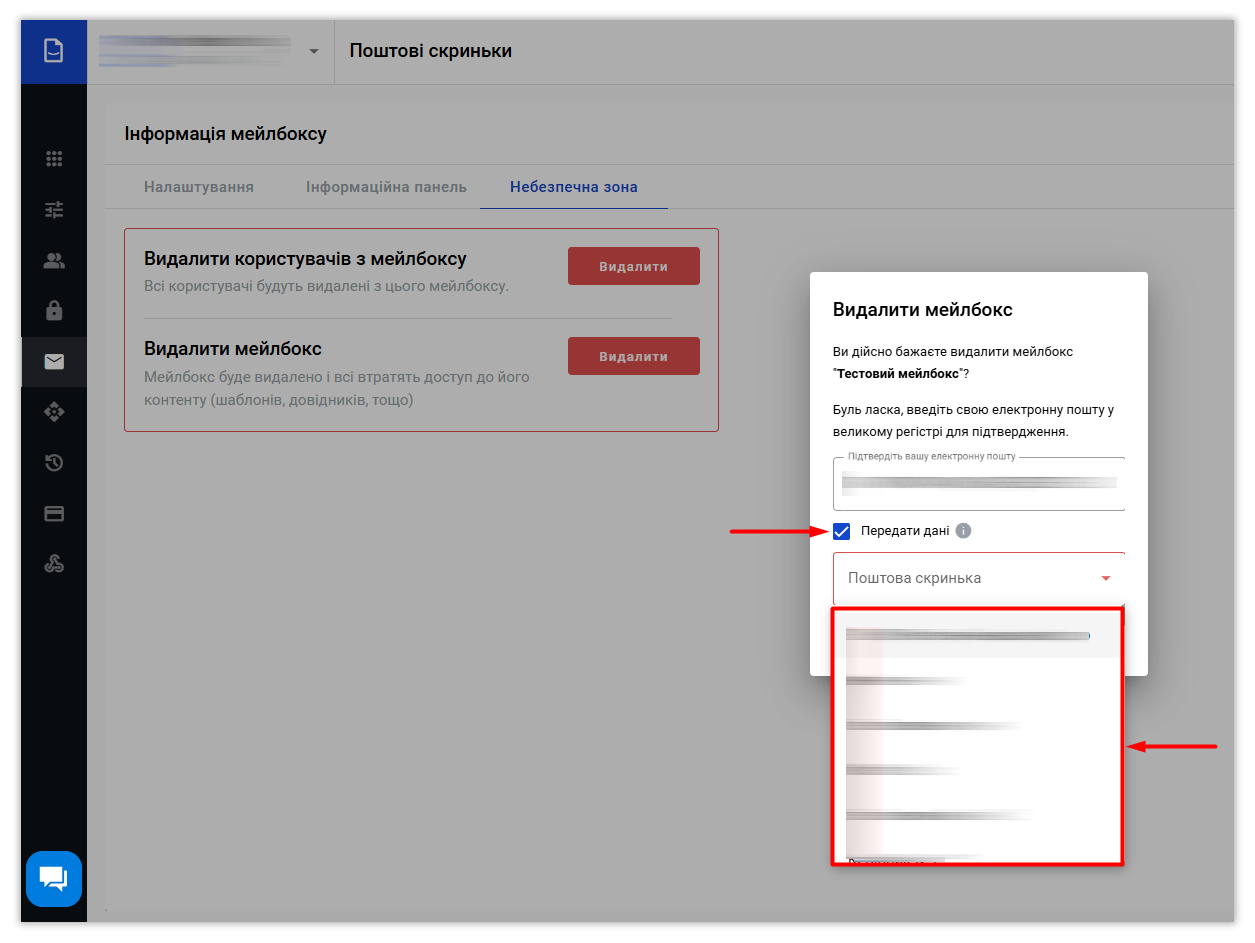 Сутності поштової скриньки (шаблони, категорії, сценарії, довідники) тепер можна перенести в іншу поштову скриньку в разі видалення скриньки адміністратором