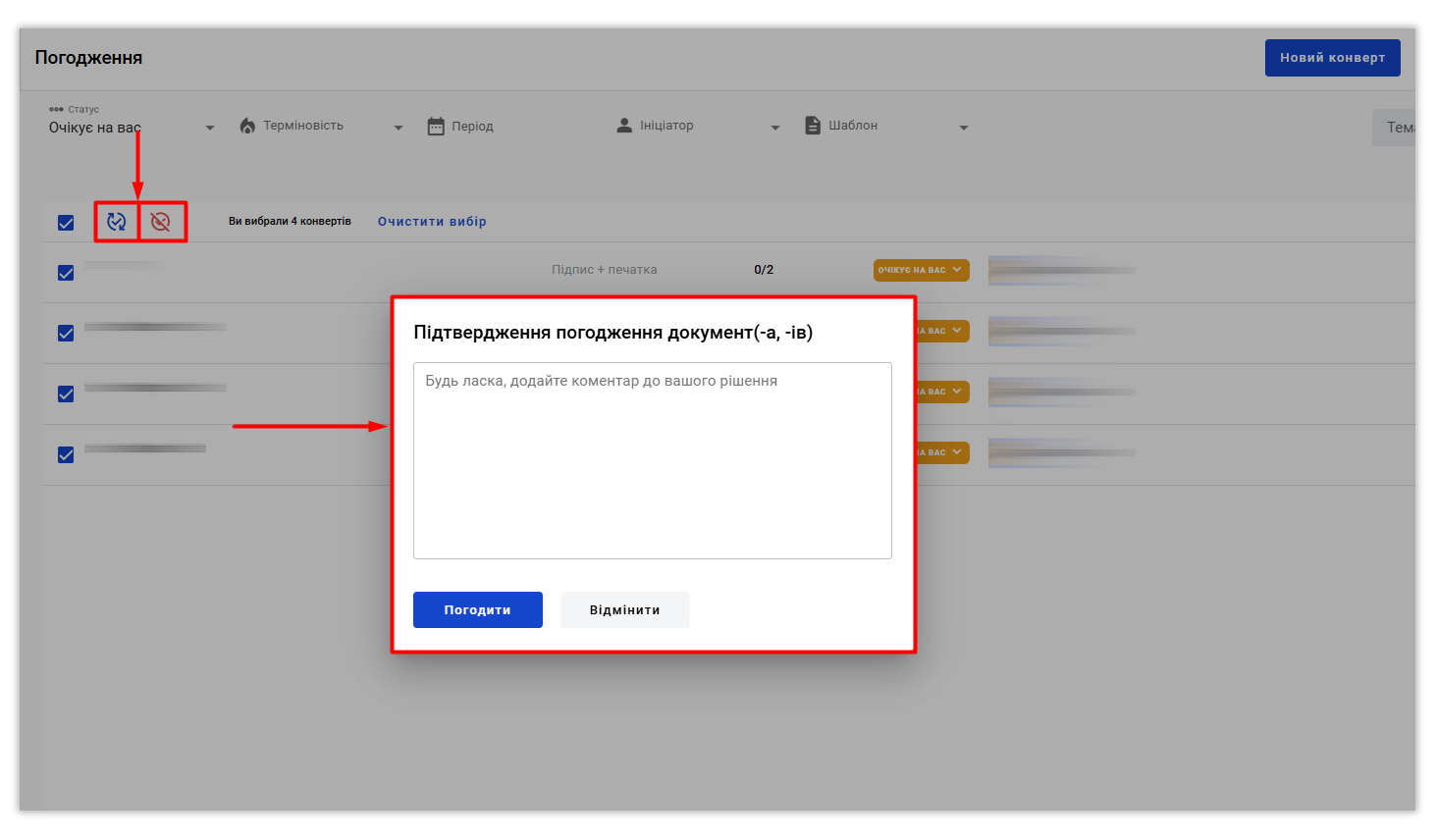 Додана можливість масово погоджувати конверти, тепер така дія доступна у списку конвертів