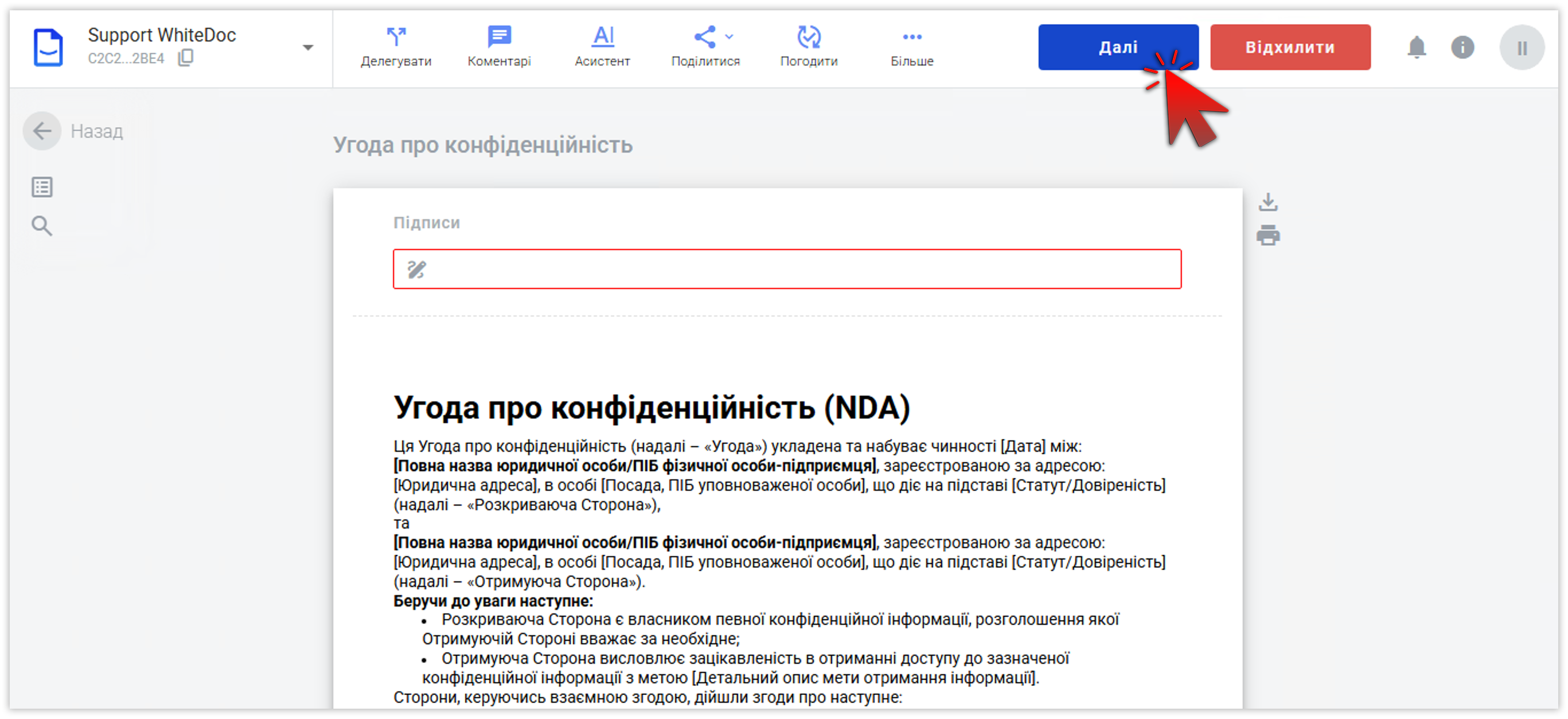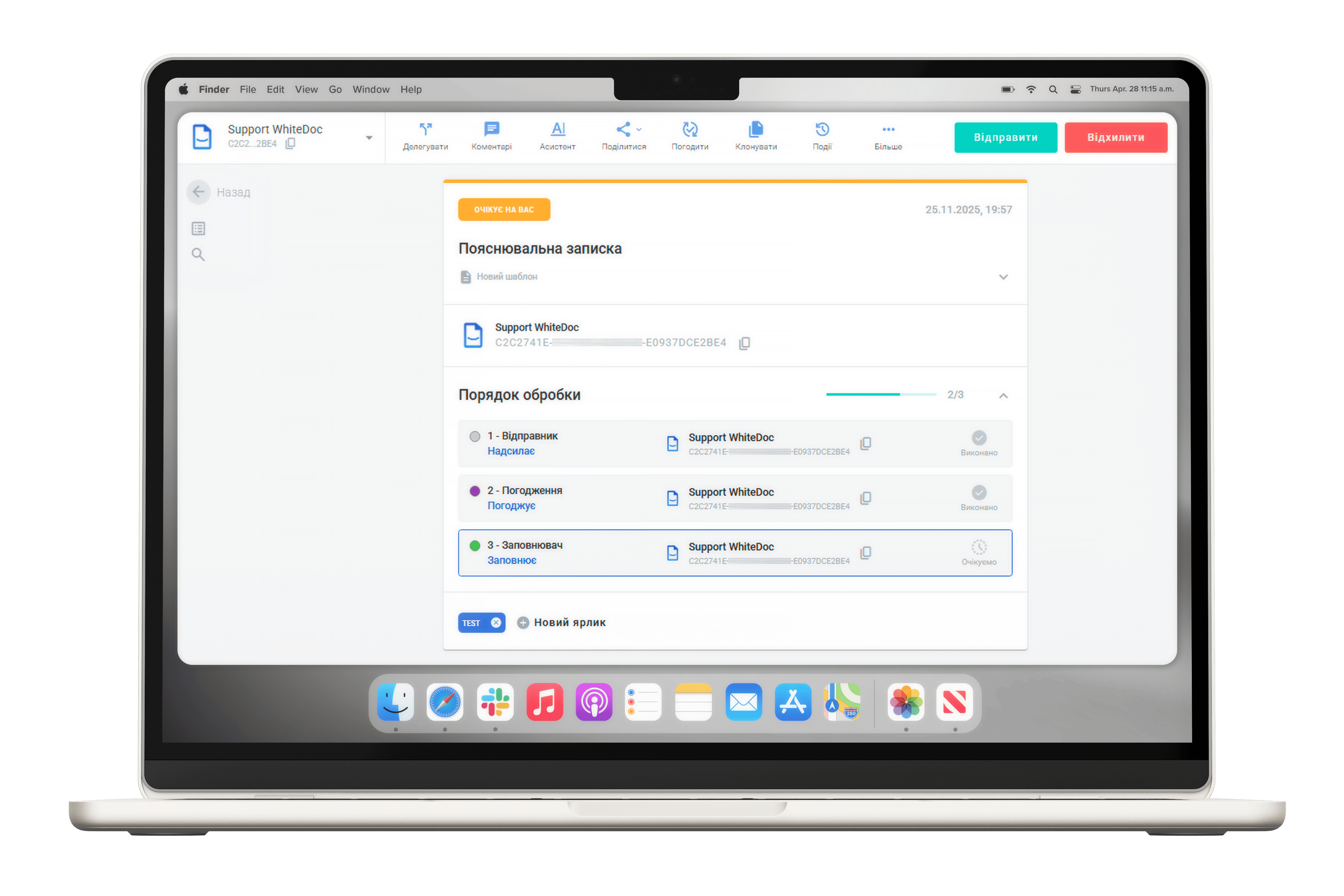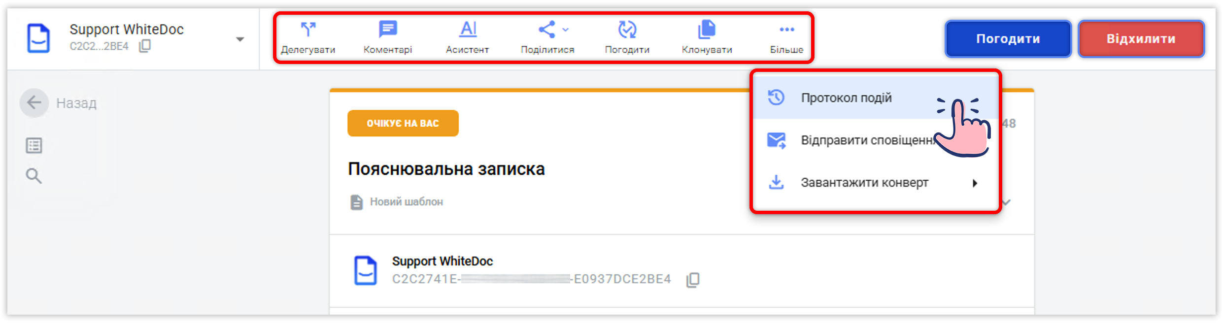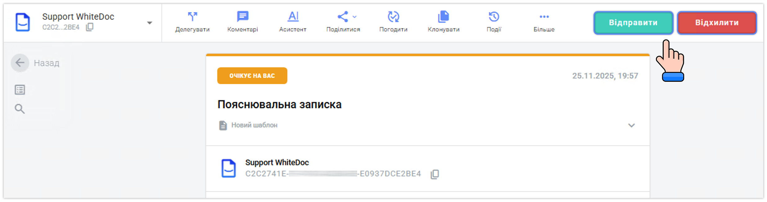 Усі кнопки взаємодії з документами (Відправити, Погодити, Відхилити) переїхали на верхню панель, об’єднуючи процес управління в одному місці